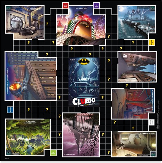 Dans ce Cluedo édition spéciale BATMAN, plonge dans l’univers de Gotham afin de retrouver le commissaire de police James Gordon qui a été enlevé alors qu’il enquêtait sur la corruption dans la ville. A vous de localiser où il est détenu, qui est responsable de son enlèvement, et quel gadget a été volé et utilisé pour l’enlever.